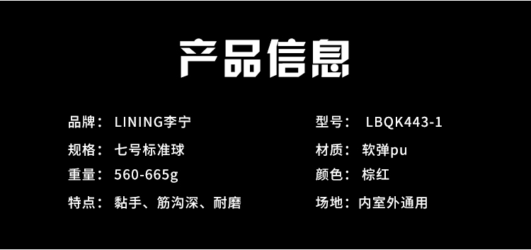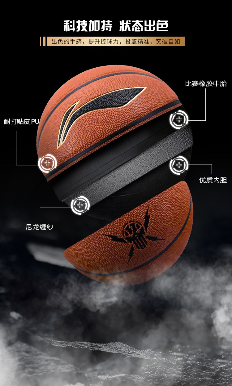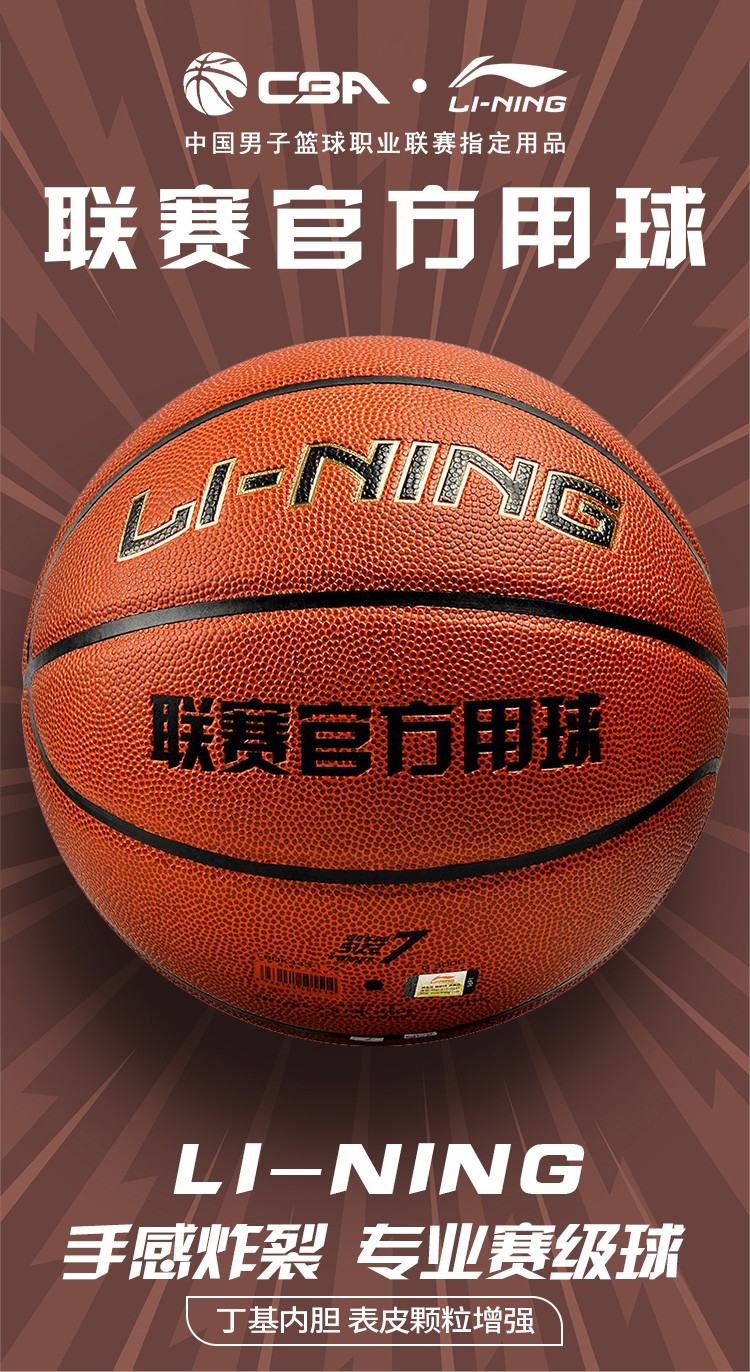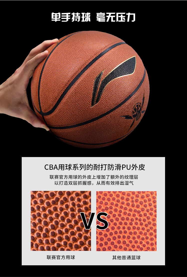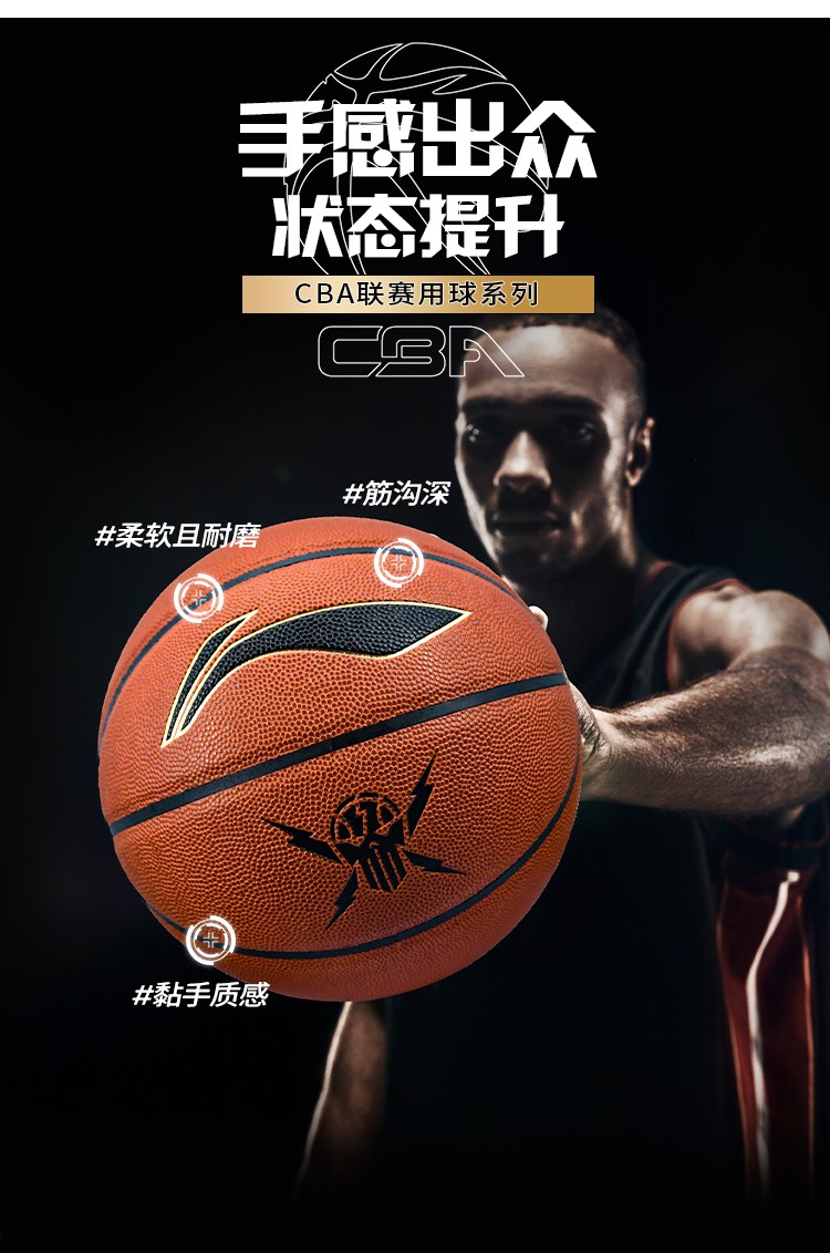 李宁(LI-NING)篮球CBA联赛官方比赛室内外儿童成人7号PU材质蓝球 LBQK443-1