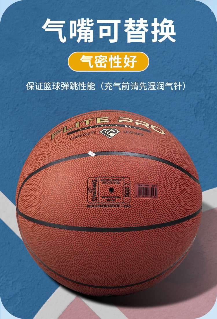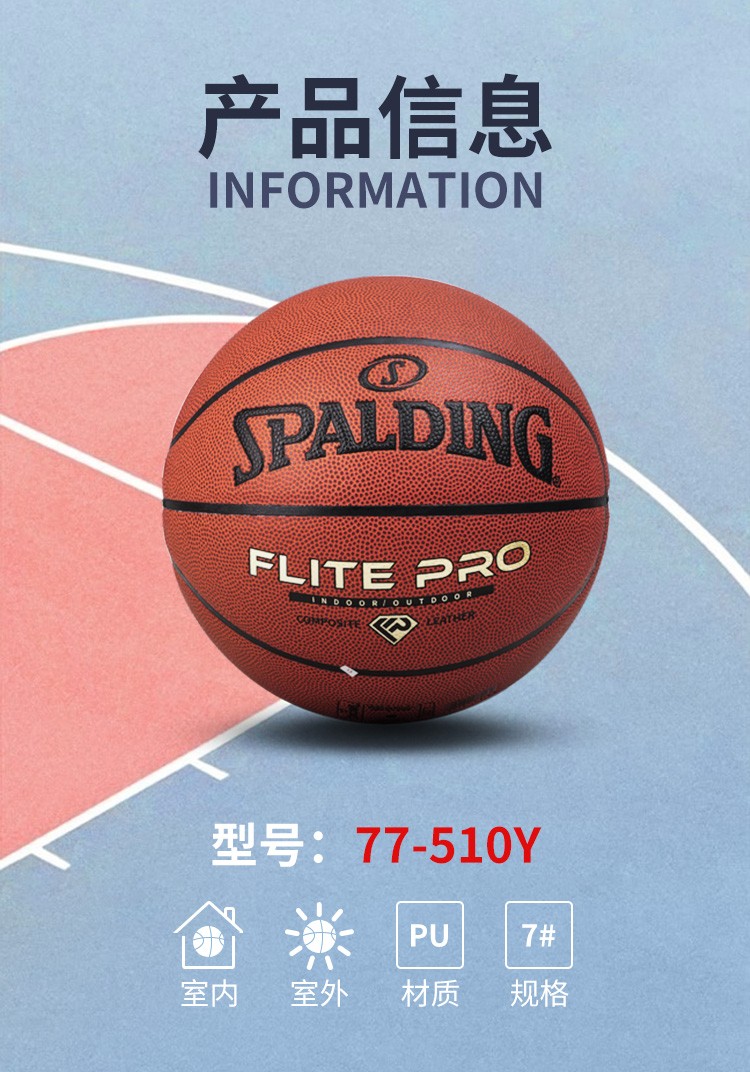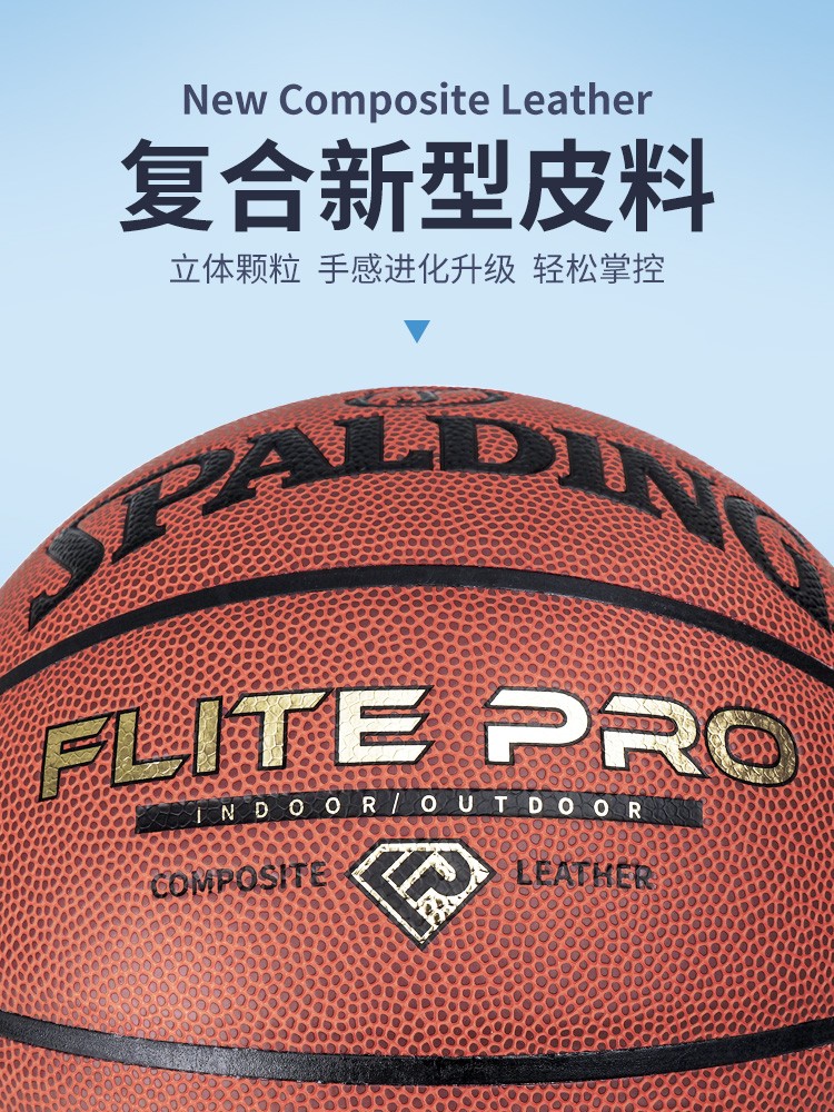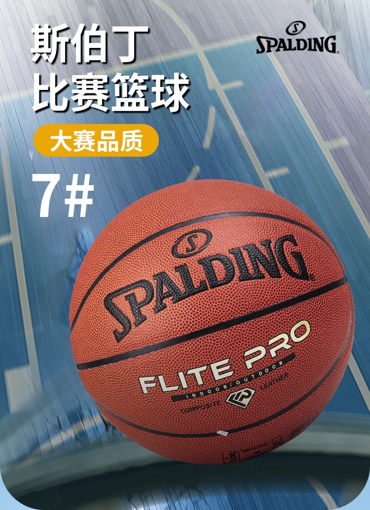 斯伯丁篮球7号比赛PU金钻蓝球Flite PRO耐磨防滑室内外训练成人儿童蓝球77-510Y