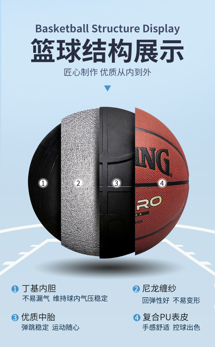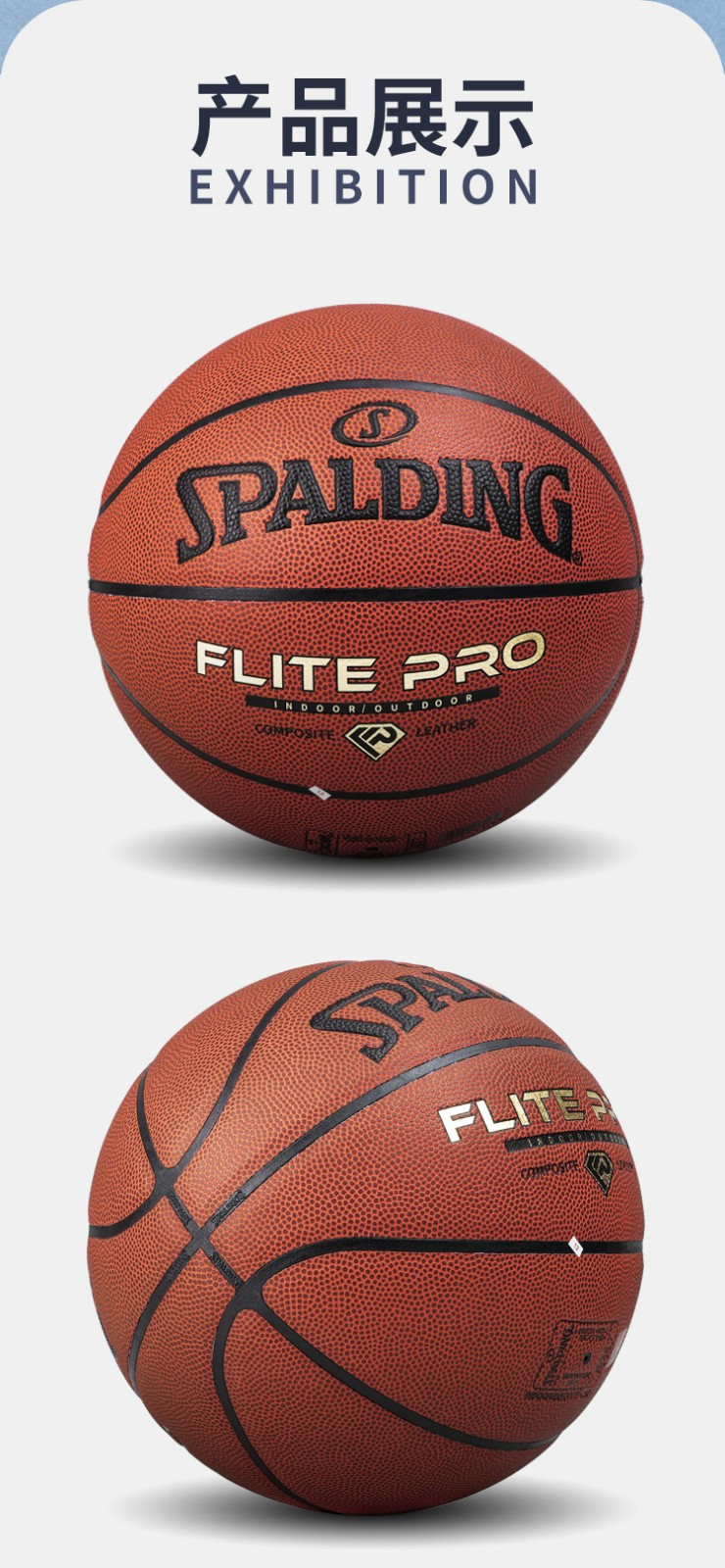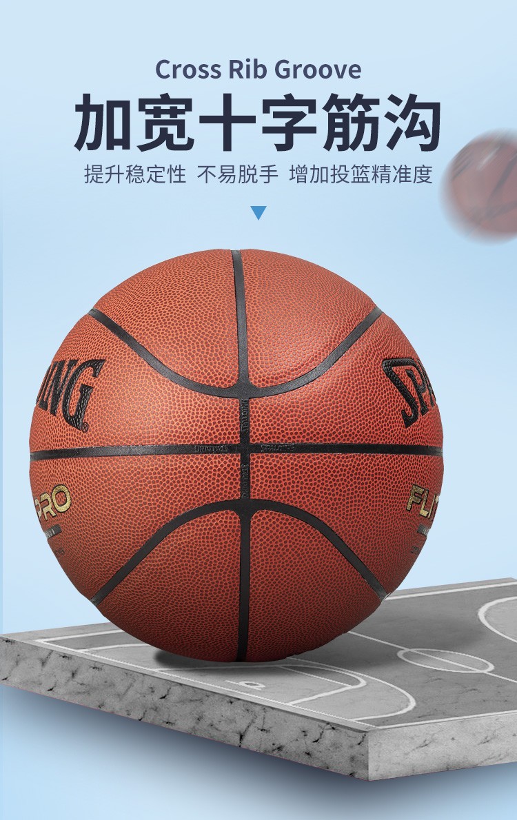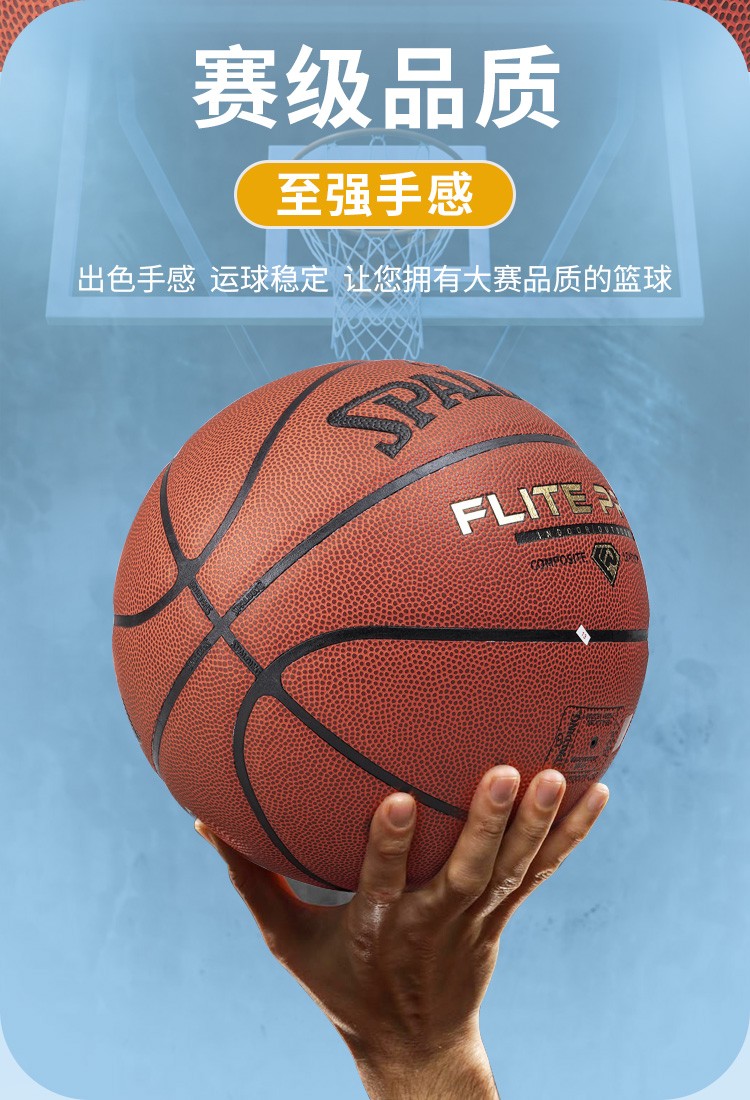 斯伯丁篮球7号比赛PU金钻蓝球Flite PRO耐磨防滑室内外训练成人儿童蓝球77-510Y