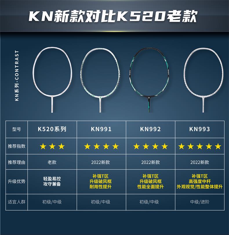 薰风2022新款羽毛球拍KN系列全碳素超轻全能型单拍熏风训练拍教练拍比赛用专业级K520升级款球拍 KN992 雅黑 K520升级款(空拍)