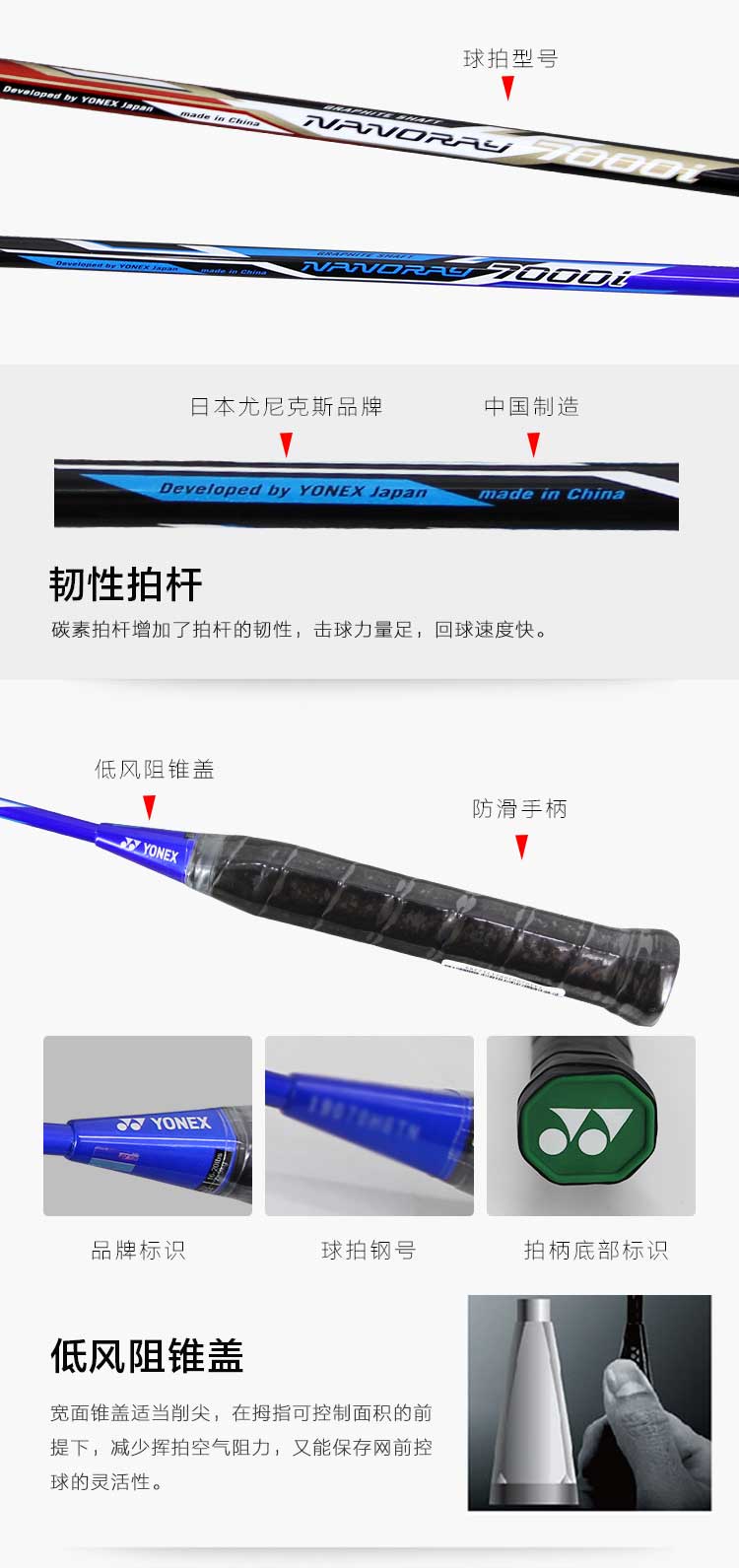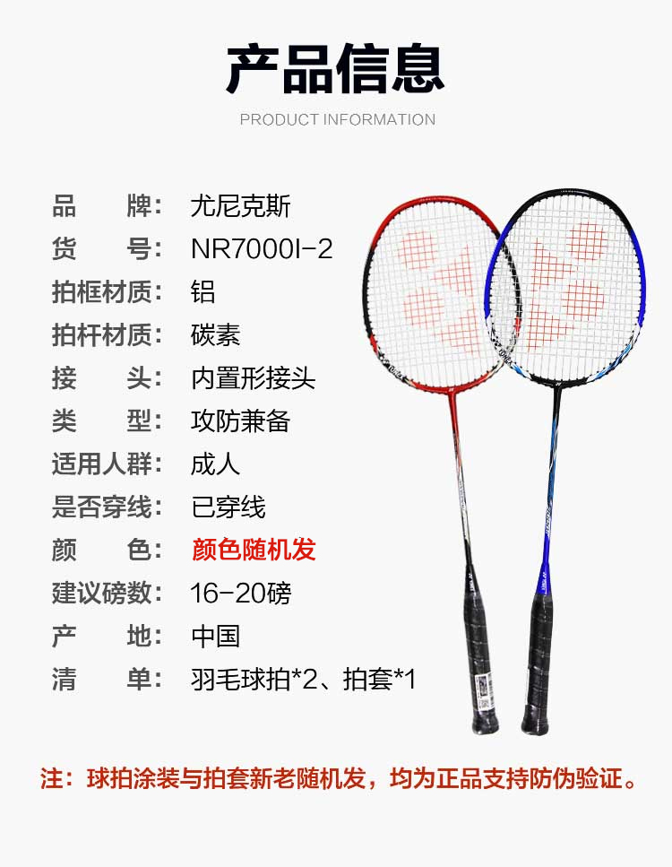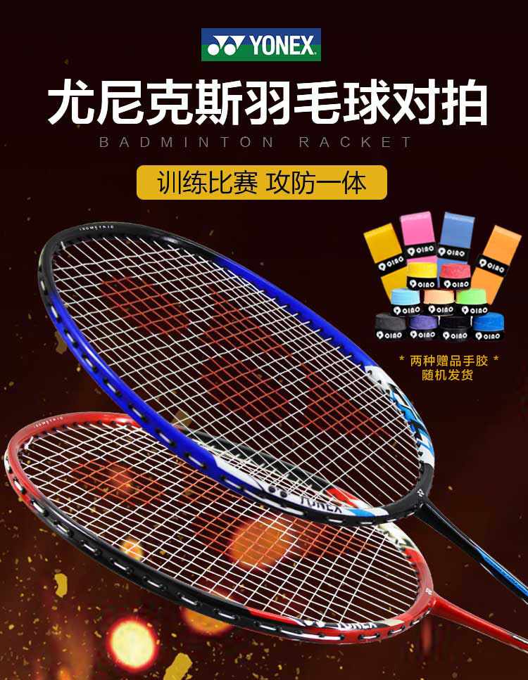 尤尼克斯YONEX羽毛球拍对拍碳素中杆2支训练比赛羽拍NR7000I-2(已穿线含手胶)